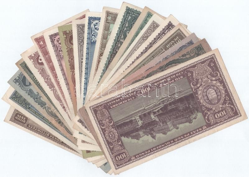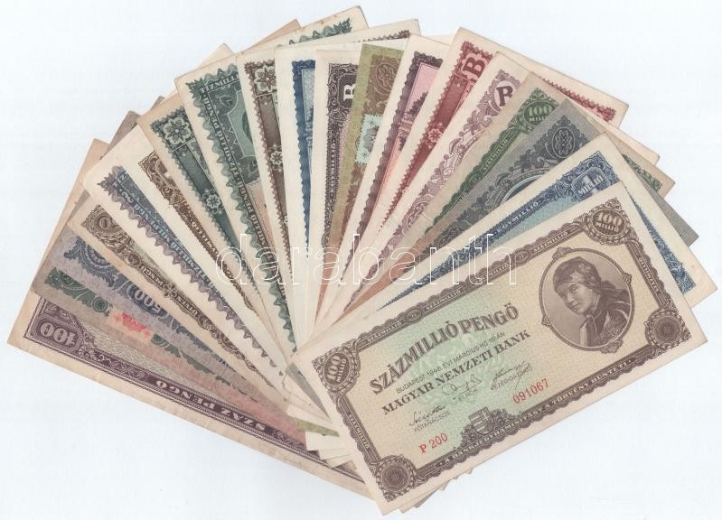 1945-1946. 50P - 1.000.000BP (19xklf) T:II-,III https://www.darabanth.com/de/402-Fernauktion/402.0/Numismatik/Ungarische-Banknoten~2000007/1945-1946-50P-1000000BP-19xklf-TII-III~II2473071
