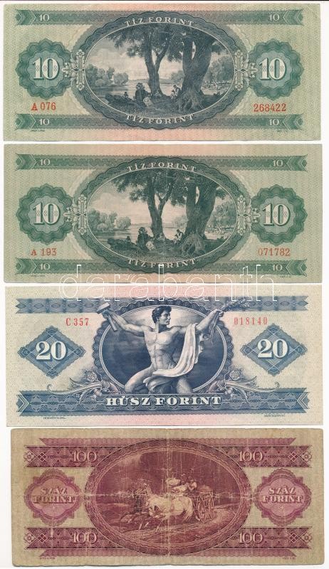 1949 10Ft + 1949. 100Ft + 1962 10Ft + 1980. 20Ft T:III,III- közte szép... https://www.darabanth.com/de/402-Fernauktion/402.0/Numismatik/Ungarische-Banknoten~2000007/1949-10Ft-plus-1949-100Ft-plus-1962-10Ft-plus-1980-20Ft-TIII-III-kozte-szep-papir~II2467540
