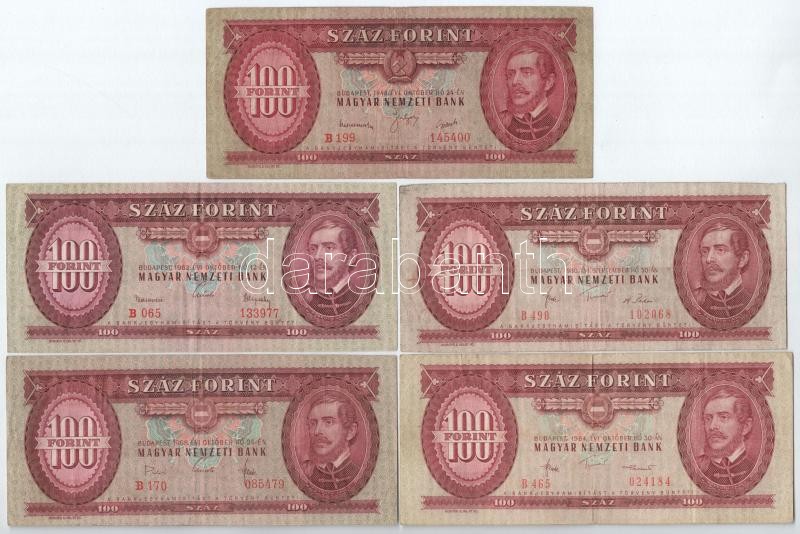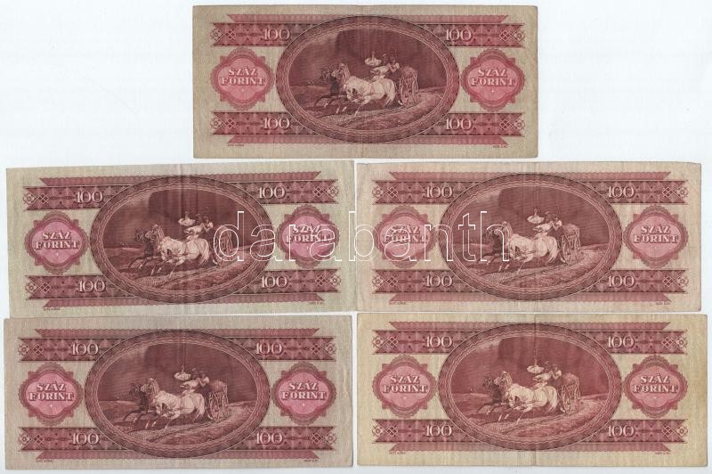 1949-1995. 100Ft (9xklf) T:I--III https://www.darabanth.com/de/402-Fernauktion/402.0/Numismatik/Ungarische-Banknoten~2000007/1949-1995-100Ft-9xklf-TI-III~II2473076