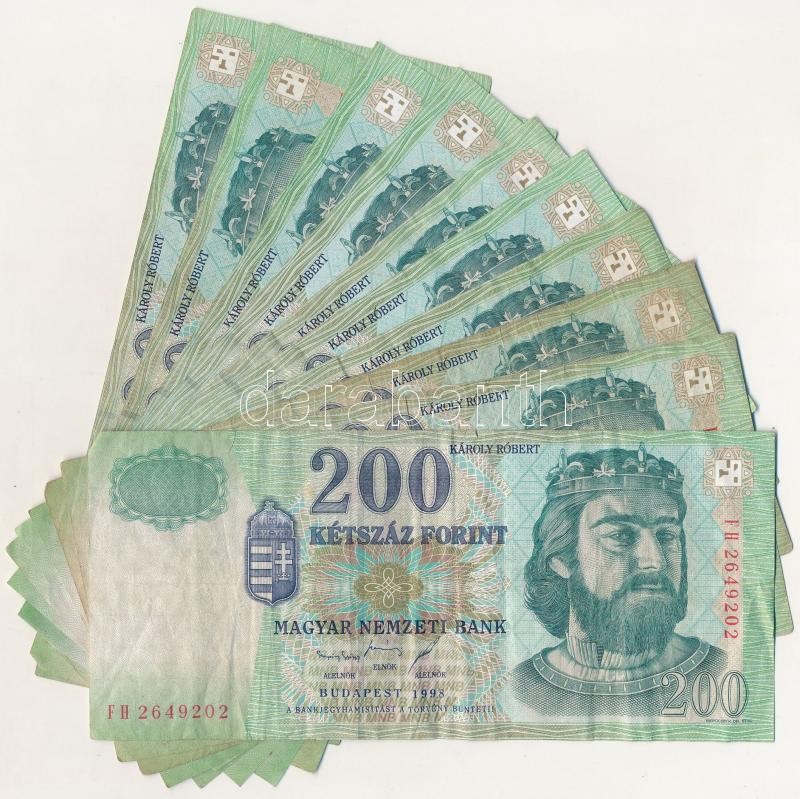 1998-2007. 200Ft (10db) T:III https://www.darabanth.com/de/402-Fernauktion/402.0/Numismatik/Ungarische-Banknoten~2000007/1998-2007-200Ft-10db-TIII~II2472958