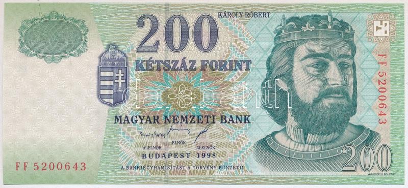 1998. 200Ft "FF 5200643" T:I Hungary 1998. 200 Forint "... https://www.darabanth.com/de/402-Fernauktion/402.0/Numismatik/Ungarische-Banknoten~2000007/1998-200Ft-FF-5200643-TI-Hungary-1998-200-Forint-FF-5200643-CUNC~II2469382