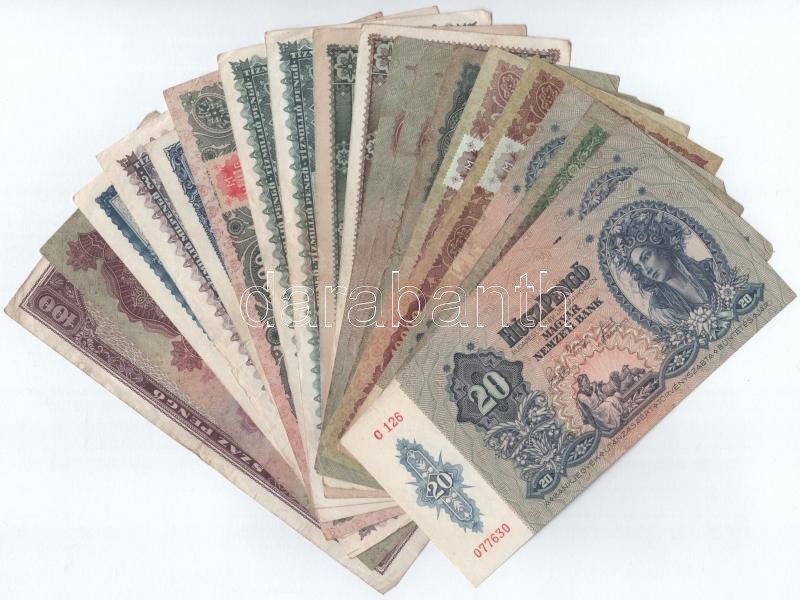 Vegyes 19db-os pengő bankjegy tétel T:III,III- https://www.darabanth.com/de/402-Fernauktion/402.0/Numismatik/Ungarische-Banknoten~2000007/Vegyes-19db-os-pengo-bankjegy-tetel-TIII-III-~II2470191