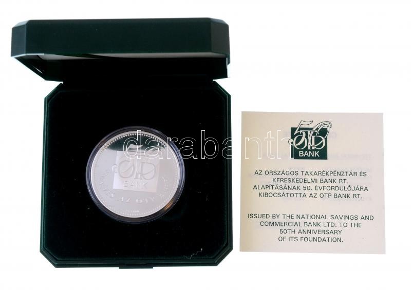 Kósa István (1953-) 1999. "50 éves az OTP Bank Rt." Ag emlékérem tanúsítvánnyal, eredeti dísztokban (31,01g/0.999/42,5mm) T:PP