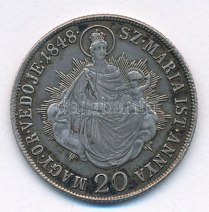 Adamo B5 https://www.darabanth.com/de/402-Fernauktion/402.0/Numismatik/Ungarische-Munzen-und-Munzen-mit-ungarischem-Munzzeichen~2000008/1848B-20kr-Ag-V-Ferdinand-T2-patina-Adamo-B5~II2471732