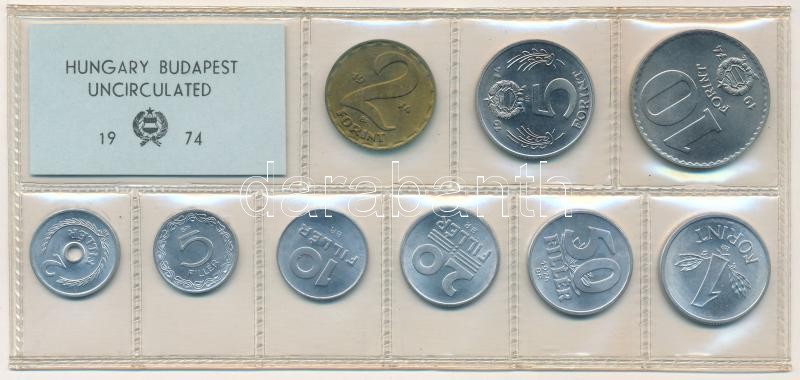 Beschreibung: 1974. 2f-10Ft (9xklf) érmés forgalmi sor fóliatokban T:1 patina
