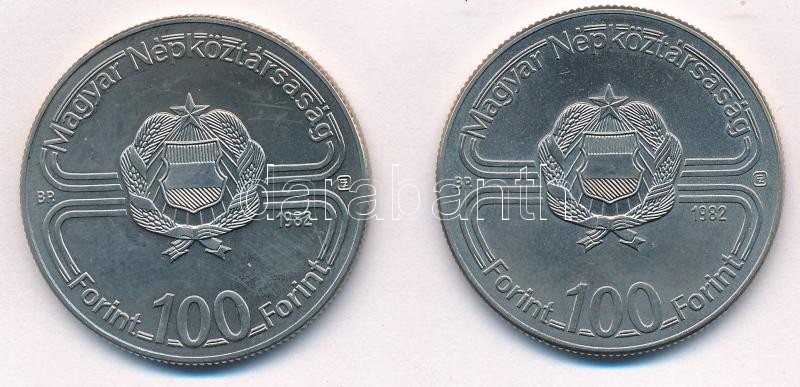 1982. 100Ft Cu-Ni "Labdarúgó világbajnokság 1982" (2x) T:BU ... https://www.darabanth.com/de/402-Fernauktion/402.0/Numismatik/Ungarische-Munzen-und-Munzen-mit-ungarischem-Munzzeichen~2000008/1982-100Ft-Cu-Ni-Labdarugo-vilagbajnoksag-1982-2x-TBU-Adamo-EM68~II2469242