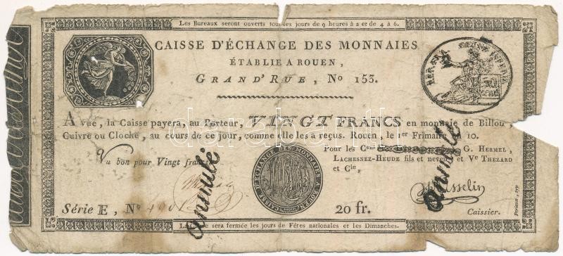 Beschreibung: Franciaország / Rouen 1797-1803. 20Fr "annulé (érvénytelen)" felülbélyegzéssel T:IV