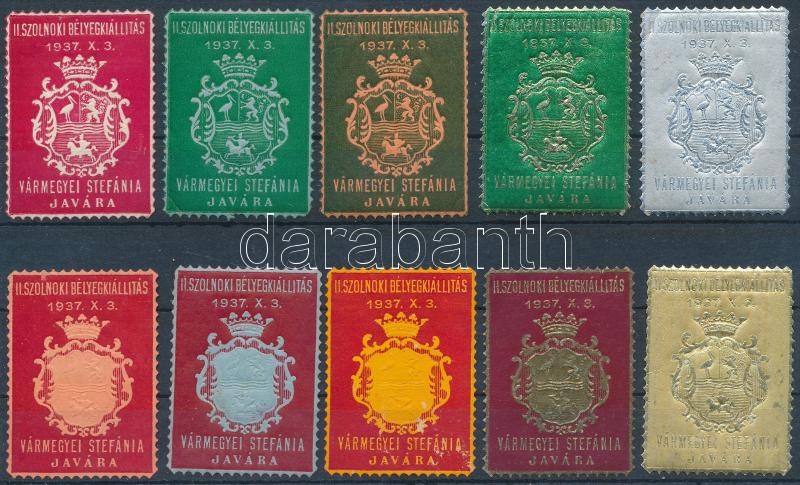 Beschreibung: 1937 II. Szolnoki Bélyegkiállítás Vármegyei Stefánia javára 10 klf levélzáró