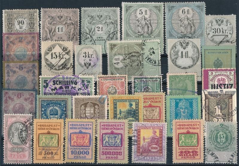 32 db régi magyar és osztrák okmánybélyeg https://www.darabanth.com/de/402-Fernauktion/402.0/Philatelie-und-Postgeschichte-Ungarn/Stempelmarken~500017/32-db-regi-magyar-es-osztrak-okmanybelyeg~II2474828