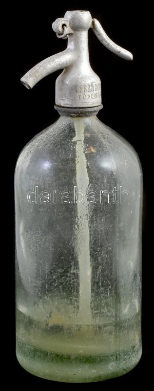 Beschreibung: Urbán Márton Tóalmás régi szódásüveg, kopássokkal, m: 31 cm