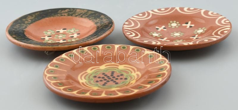 Beschreibung: Kántor Kun-Gazda Karcag 3 db fali dísztányér. Kézzel festett, jelzett, hibátlan. d: 12,7 cm