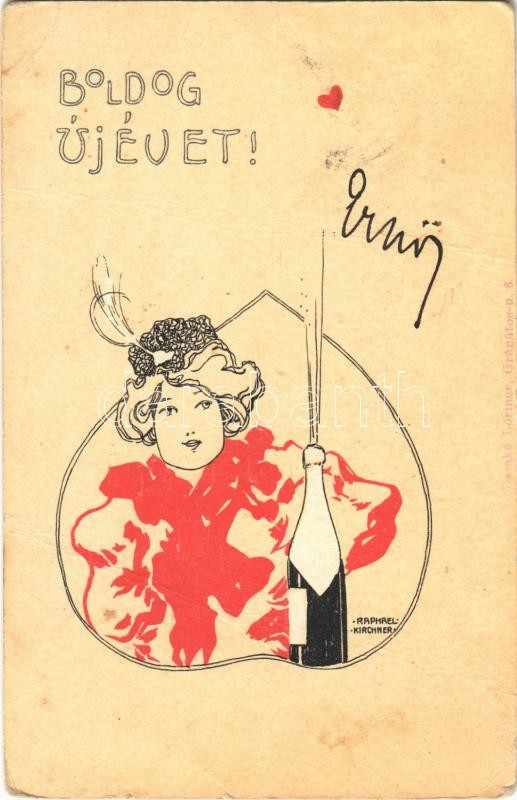 1899 Boldog Újévet! / Art Nouveau lady with champagne and New Year gre... https://www.darabanth.com/de/403-Fernauktion/403.0/Ansichtskarten/Kunstlerkarten~1000075/1899-Boldog-Ujevet-Art-Nouveau-lady-with-champagne-and-New-Year-greetings-litho-s-Raphael-Kir~II2482741
