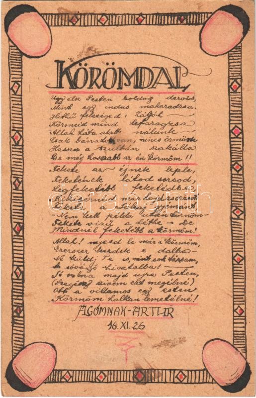 1917 Körömdal. Kézzel rajzolt Tábori Postai Levelezőlap / WWI Austro-H... https://www.darabanth.com/de/403-Fernauktion/403.0/Ansichtskarten/Militaria~1000069/1917-Koromdal-Kezzel-rajzolt-Tabori-Postai-Levelezolap-WWI-Austro-Hungarian-KuK-military-~II2481760