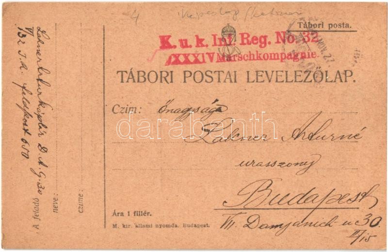 Beschreibung: 1917 Körömdal. Kézzel rajzolt Tábori Postai Levelezőlap / WWI Austro-Hungarian K.u.K. military field postcard with hand-drawn art + "K.u.K. Inf. Reg. No. 32. XXXIV Marschkompagnie" (fl)