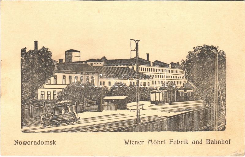 Beschreibung: Radomsko, Nowo-Radomsk, Noworadomsk; Wiener Möbel Fabrik und Bahnhof / Viennese furniture factory and railway station (fl)
