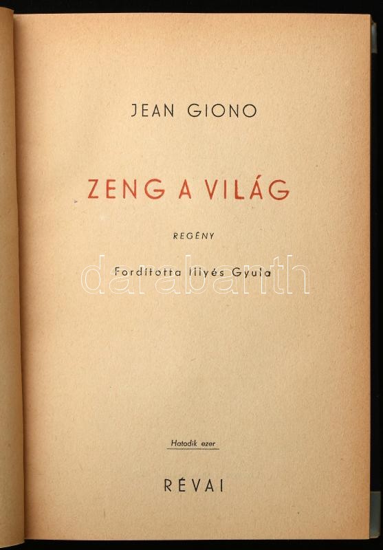 Giono, Jean: Zeng a világ. (Le Chant du Monde). Ford., a bevezető tanu... https://www.darabanth.com/de/403-Fernauktion/403.0/Bucher/Bucher-Andere-kuriositaten~1500021/Giono-Jean-Zeng-a-vilag-Le-Chant-du-Monde-Ford-a-bevezeto-tanulmanyt-irta-Illyes-Gyula~II2481840