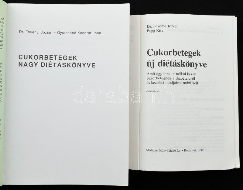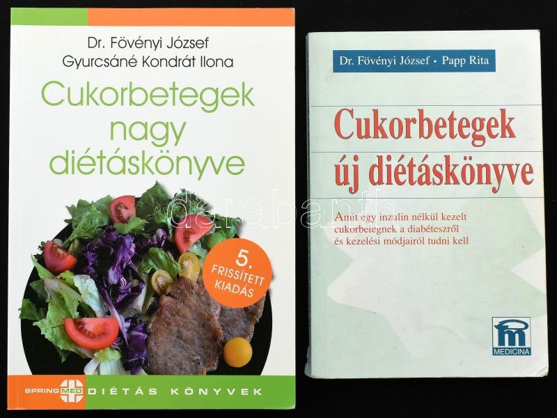 Fövényi József-Papp Rita: Cukorbetegek új diétáskönyve. Bp., 1999., Medicina. + Fövényi József-Gyurcsáné Kondrát Ilona: Cukorbetegek nagy diétáskönyve. Bp., 2013., SpringMed. Kiadói papírkötések.