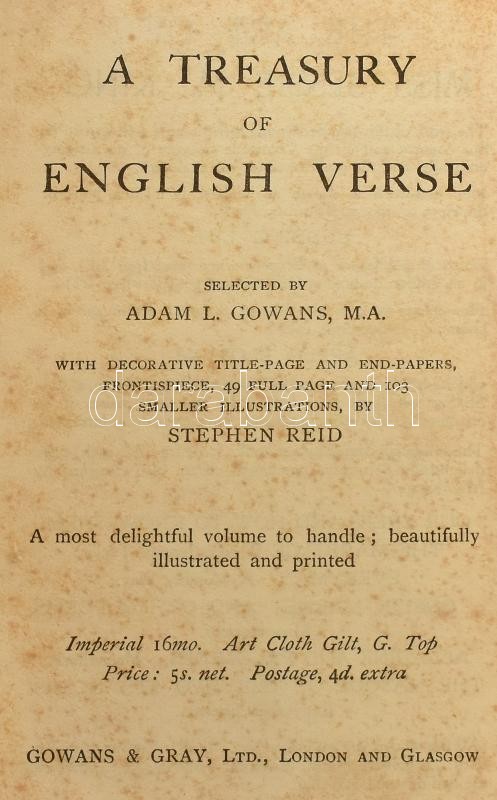 Gowan's Nature Books 7 száma, egybekötve. No. 2., 3.: Wild Flowers at home. Fist, second series.; No. 8. : Our Trees.; No. 9.: Wild Flowers at home. Third series.; No. 16.: Wild Flowers at home. Fourth series.; No. 20.: Alpine plants at home.; No. 23.: Our flowering shrubs. London-Glasgow, 1907-1909, Gowans & Gray. Angol nyelven. Nagyon gazdag fekete-fehér képanyaggal illusztrált. Átkötött egészvászon-kötés, kopott borítóval, egy lapon ceruzás jegyzettel, bélyegzéssel, néhány kissé foltos lappal.