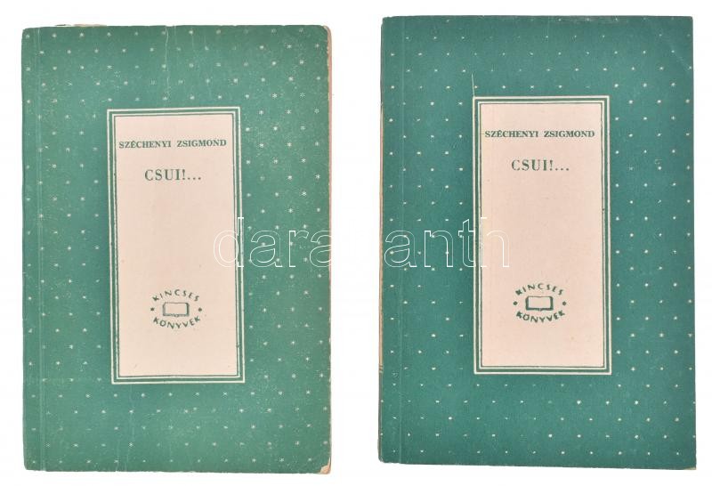 Széchenyi Zsigmond: Csui!... Afrikai vadásznapló. I-II. kötet. Kincses Könyvek. Bp., 1961, Szépirodalmi Könyvkiadó. 263+239 p. Kiadói papírkötés, a borítón törésnyomokkal, kisebb kopásnyomokkal.