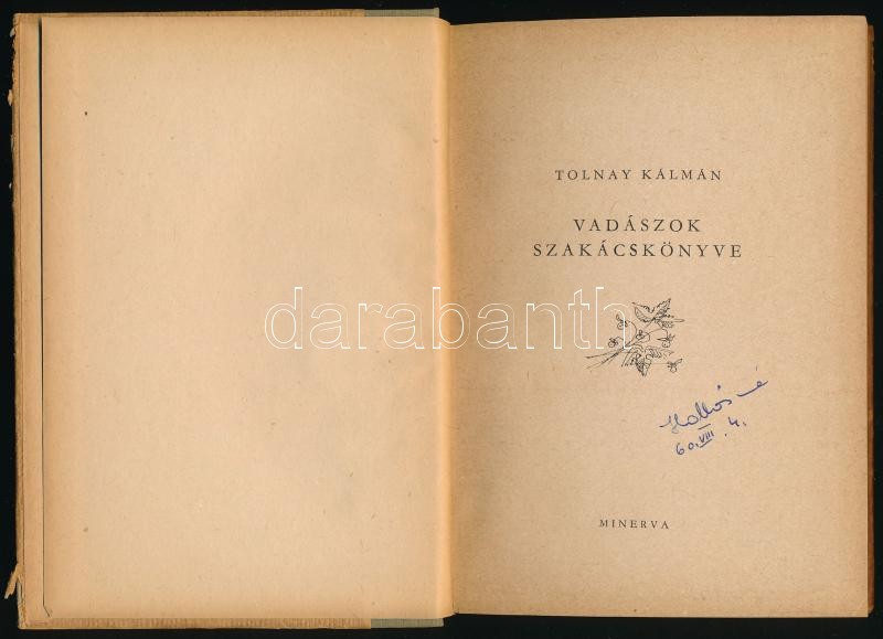 Tolnay Kálmán: Vadászok szakácskönyve. Bp., 1960,Minerva. Kiadói félvá... https://www.darabanth.com/de/403-Fernauktion/403.0/Bucher/Bucher-Jagd~1500008/Tolnay-Kalman-Vadaszok-szakacskonyve-Bp-1960-Minerva-Kiadoi-felvaszon-kotesben-kopot~II2477218