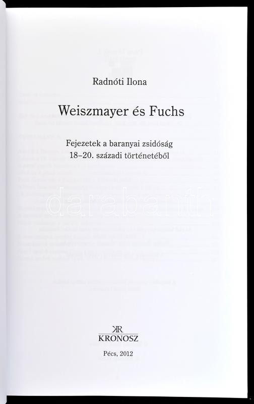 Radnóti Ilona: Weiszmayer és Fuchs. Fejezetek a baranyai zsidóság 18-2... https://www.darabanth.com/de/403-Fernauktion/403.0/Bucher/Bucher-Judaica~1500016/Radnoti-Ilona-Weiszmayer-es-Fuchs-Fejezetek-a-baranyai-zsidosag-18-20-szazadi-tortenetebC5~II2468994