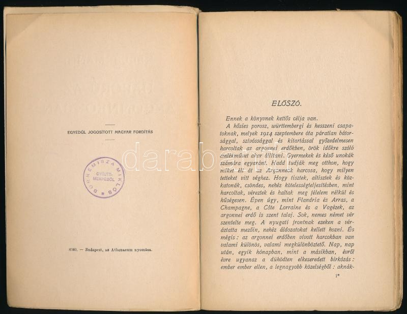Bernhard Kellermann: Háború az Argonneokban. Bp., 1916, Athenaeum. Egé... https://www.darabanth.com/de/403-Fernauktion/403.0/Bucher/Bucher-Militaria~1500005/Bernhard-Kellermann-Haboru-az-Argonneokban-Bp-1916-Athenaeum-Egeszoldalas-fekete-feher-fot~II2457890