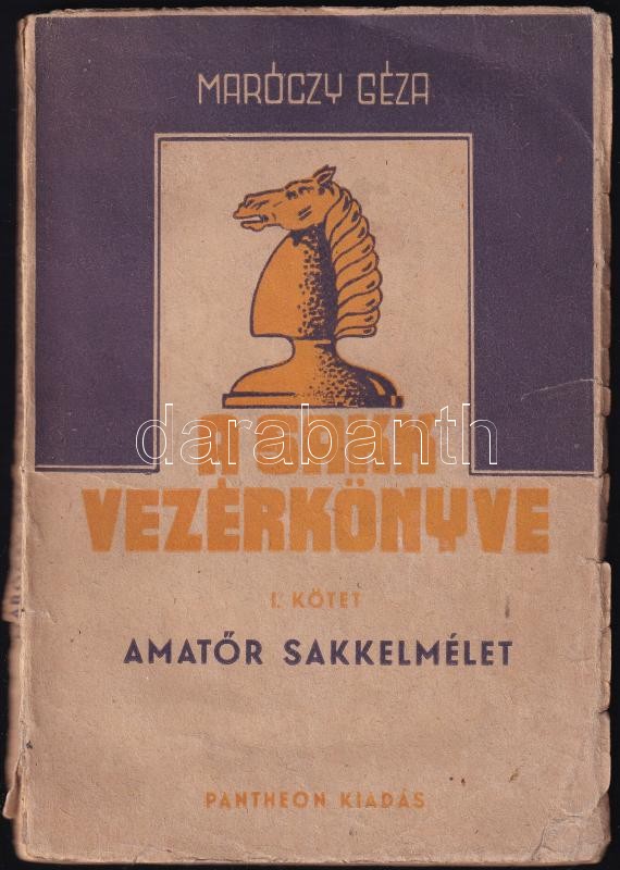 Maróczy Géza: A sakk vezérkönyve. I. kötet. Amatőr sakkelmélet. Bp., Pantheon. Kiadói papírkötés, borítón szakadásokkal, kopottas állapotban.