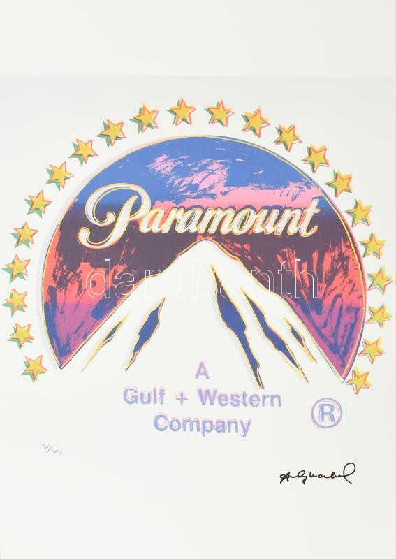 Andy Warhol (1928-1987): Paramount Litográfia, papír. Sorszámozot 31/100 jelzett a nyomaton. Georges Israel editeur szárazpecséttel is jelzett, hozzá tanúsítvány. Lithography with attest 38,3x56,3 cm