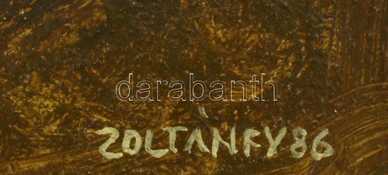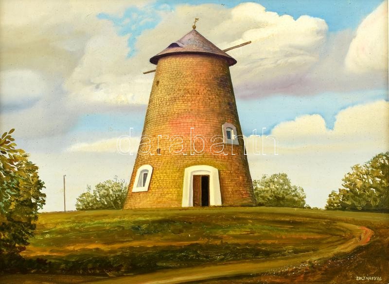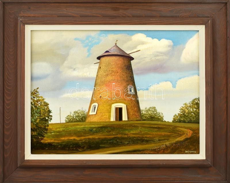 Beschreibung: Zoltánfy István (1944-2008): Malom I., 1986. Olaj, farost, jelzett, fa keretben, 30×40 cm
