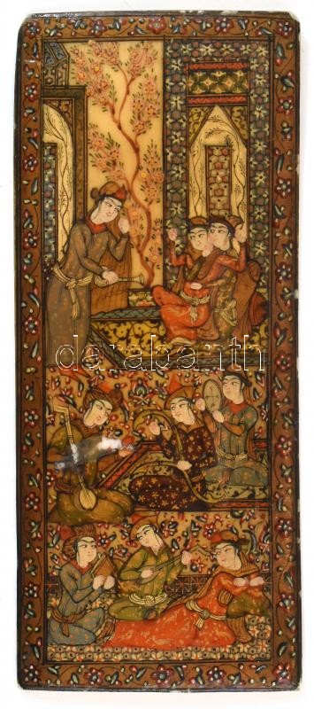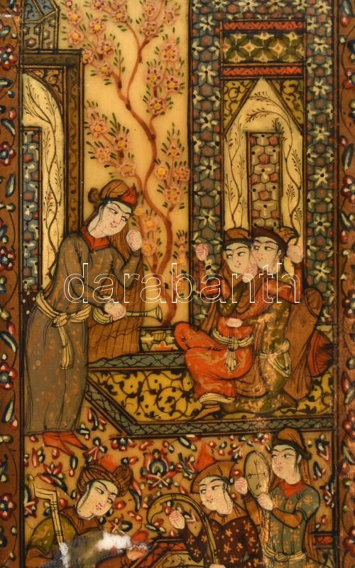 Beschreibung: Iráni (perzsa) csont, kézzel festett miniatűr, 1900 körül, kopásokkal, 12x5cm