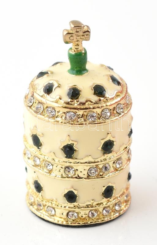 Komplett gyűjtemény a Királyi Koronaékszerek sorozat 39 db klf stilizált 24K-os aranyozással is bevont miniatűr leghíresebb koronák, eredeti ékszer dísztokokban illetve leíró kis könyvvel, hibátlan állapotban, hozzá tároló polc