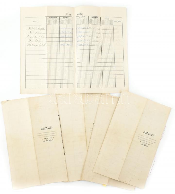 1895-1903 Kimutatás a Kalocsai Érseki Kisebb Papnevelő-intézet növendékeinek gimnáziumi tanulmányairól és magatartásáról, 10 db füzet, közte 2 töredékes