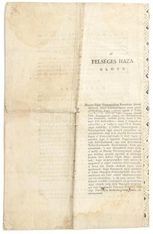 1807 A Fejér vármegyében, Baracskán lakó agilisok (köznemesek) folyamo... https://www.darabanth.com/de/403-Fernauktion/403.0/Kunst-Dokumente-andere-Sammelgebiete/Drucksachen~500028/1807-A-Fejer-varmegyeben-Baracskan-lako-agilisok-koznemesek-folyamodvanya-a-csaszarhoz-~II2482449