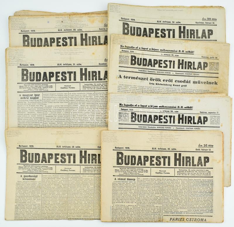 1929 Budapesti Hírlap 18 számának kolligátuma a benne lévő érdekesebb cikkekből, nem teljes számok, rajtuk ceruzás jegyzetekkel, aláhúzásokkal. Közte: új lengyel kormány, kormányzó névnapja, Rákosi Jenő ravatalánál, Ferencz József emlékezete, gazdasági kisantant...stb. c. írásokkal is.