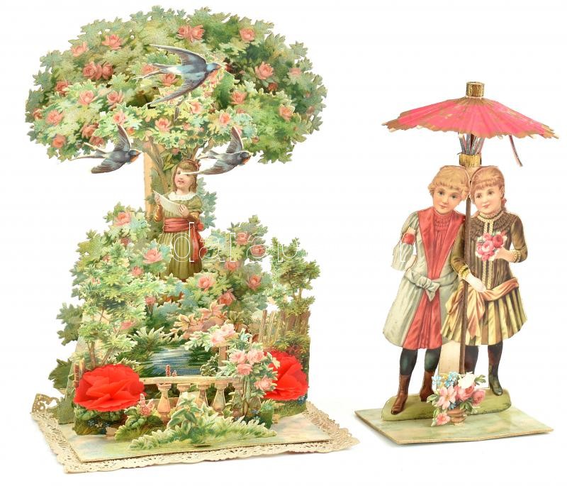 Beschreibung: cca 1882-1890 2 db díszes kinyitható litho üdvözlőkártya, sérülésekkel