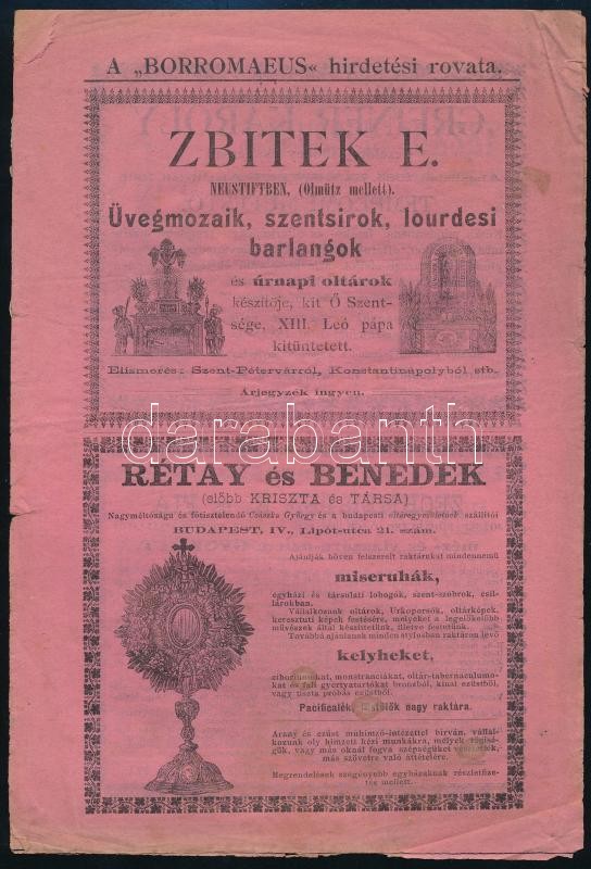 cca 1890-1910 A Borromaeus katolikus hitszónoklati folyóirat hirdetési... https://www.darabanth.com/de/403-Fernauktion/403.0/Kunst-Dokumente-andere-Sammelgebiete/Drucksachen~500028/cca-1890-1910-A-Borromaeus-katolikus-hitszonoklati-folyoirat-hirdetesi-rovata-szerk-Nagy-Antal~II2479402