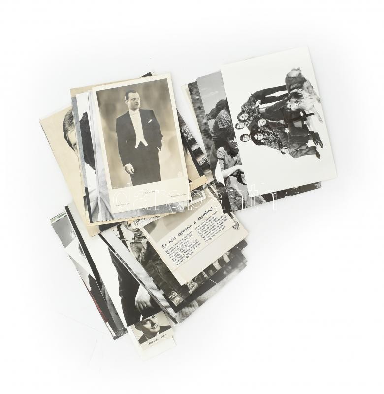 cca 1950-1970 Vegyes nyomtatvány tétel, benne főleg színészeket, kisebb részben zenészeket ábrázoló képeslapokkal, nyomtatványokkal, közte Metró, Illés zenekarok is.