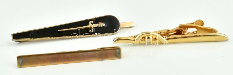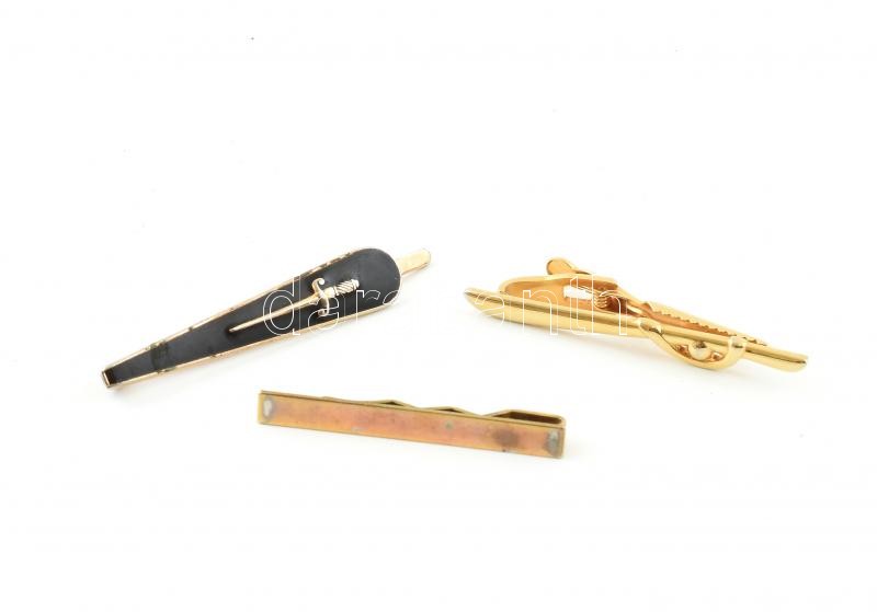 Beschreibung: 3 db fém nyakkendőcsipesz, kisebb kopásnyomokkal, h: 5 cm - 6,5 cm