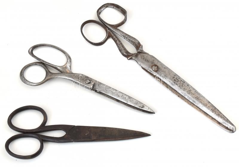 3 db régi olló, kopott, rozsdás. h: 16 és 22 cm között. https://www.darabanth.com/de/403-Fernauktion/403.0/Kunst-Dokumente-andere-Sammelgebiete/Flohmarkt~500012/3-db-regi-ollo-kopott-rozsdas-h-16-es-22-cm-kozott~II2476319