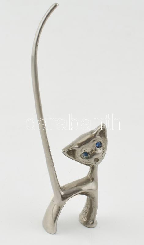 Beschreibung: Cicafigura, fém, kopott, m: 14cm