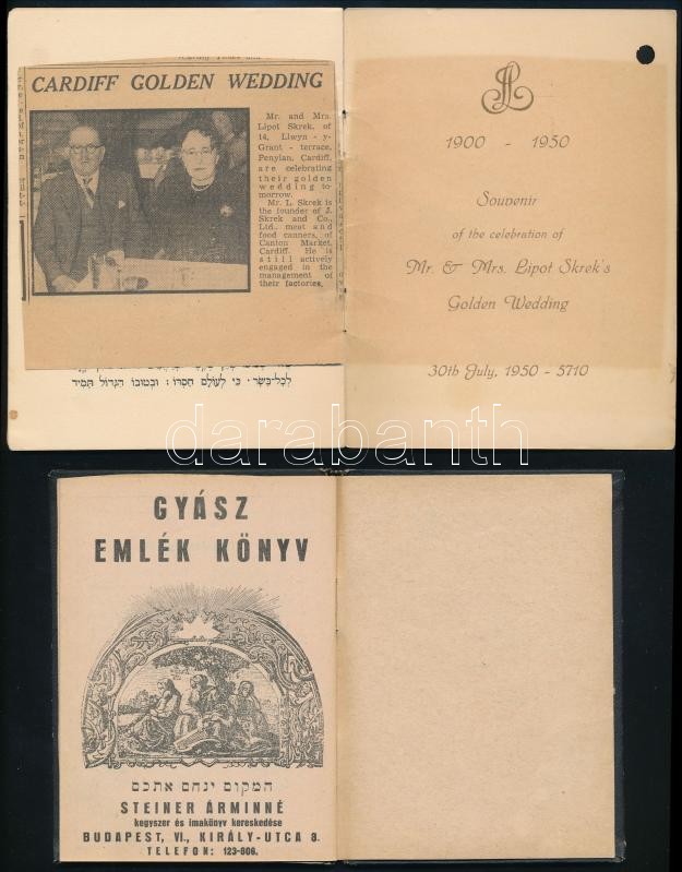 cca 1930 4 db kiadvány, közte gyászimakönyv https://www.darabanth.com/de/403-Fernauktion/403.0/Kunst-Dokumente-andere-Sammelgebiete/Judaica~500023/cca-1930-4-db-kiadvany-kozte-gyaszimakonyv~II2479597