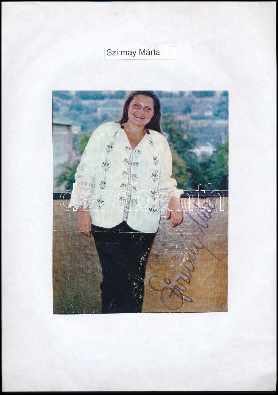 Beschreibung: Szirmay Márta (1939-2015) opera-énekesnő aláírása újságkivágáson