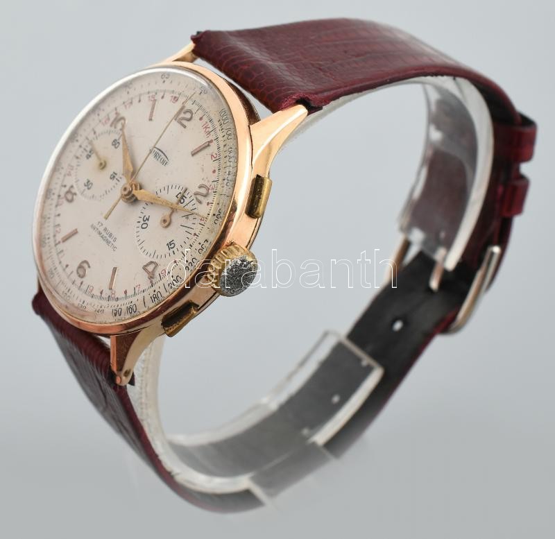 Aureole kronográf 18K arany tokos, jelzett, 17 köves kézi felhúzós kar... https://www.darabanth.com/de/403-Fernauktion/403.0/Kunst-Dokumente-andere-Sammelgebiete/Uhren~500010/Aureole-kronograf-18K-arany-tokos-jelzett-17-koves-kezi-felhuzos-karora-bor-szijjal-szC3~II2478066