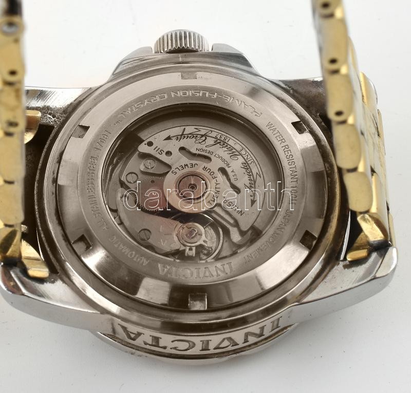 Beschreibung: Invicta automata dátumkijelzős karóra, eredeti dobozában, működő, frissen szervizelt állapotban, d: 5 cm