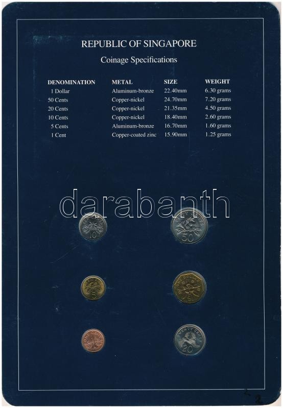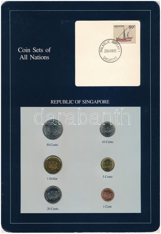 Szingapúr 1986-1988. 1c-1D (6xklf), "Coin Sets of All Nations" forgalmi szett felbélyegzett kartonlapon T:1,1-