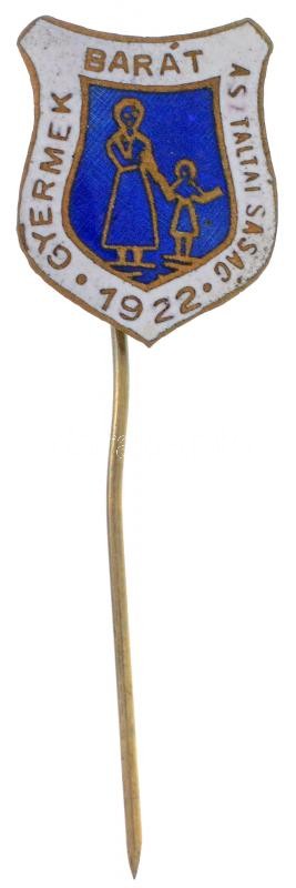 1922. "Gyermekbarát Asztaltársaság 1922" zománcozott jelvény... https://www.darabanth.com/de/403-Fernauktion/403.0/Numismatik/Faleristik-Auszeichnungen-Medaillen-Orden~2500019/1922-Gyermekbarat-Asztaltarsasag-1922-zomancozott-jelveny-18x14mm-T1-~II2476640