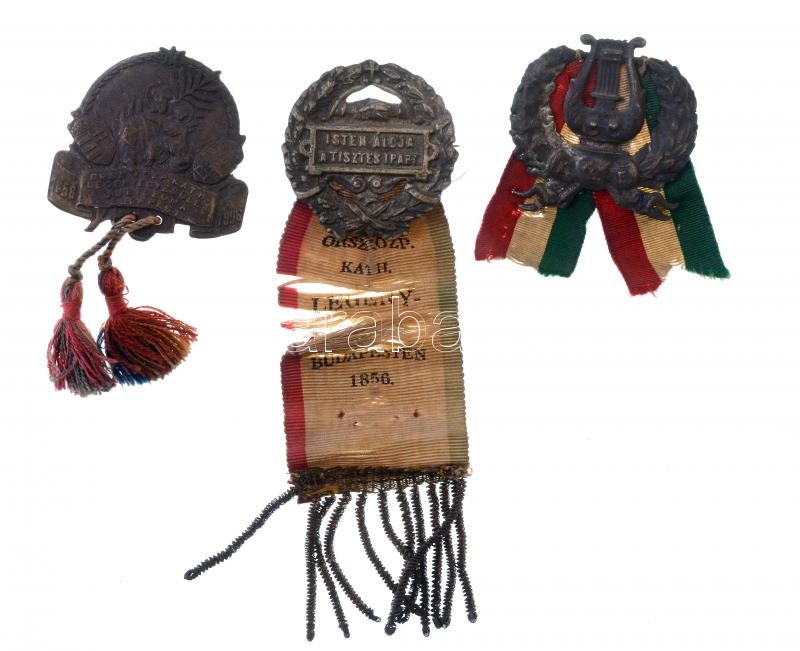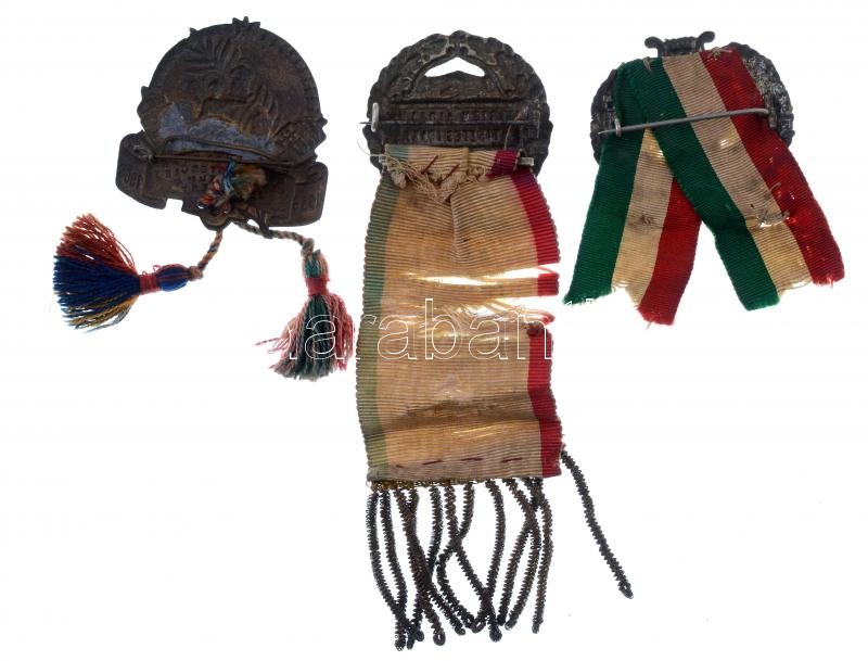 Beschreibung: ~1900. 3db legényegyesületi jelvény, közte 1906. "Országos Központi Katholikus Legényegyesület Jubileuma Budapest" Br jelvény bojttal (44x44mm) T:2 egyiken foszlott szalag