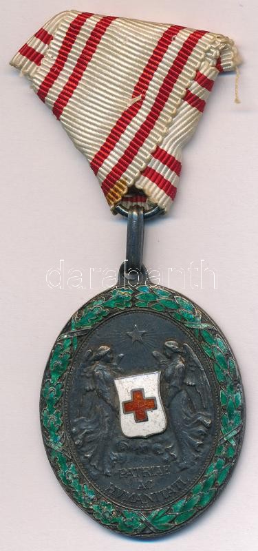 1914. "A Vörös Kereszt Ezüst Díszérme hadidíszítménnyel" jelzetlen, zománcozott Ag kitüntetés nem eredeti mellszalaggal T:2