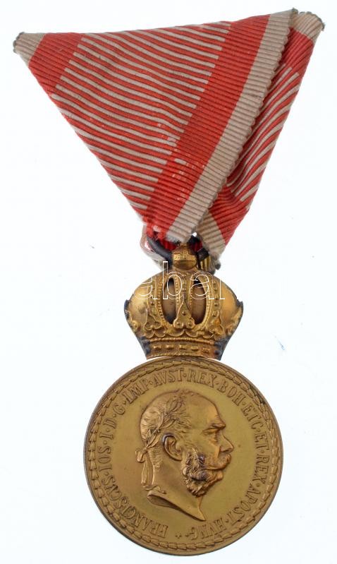 1916. "Bronz Katonai Érdemérem a katonai érdemkereszt szalagján" aranyozott Br kitüntetés mellszalagon, eredeti, kissé kopott "BREITNER TESTVÉREK BUDAPEST HOLLÓ UTCZA 2" gyártói tokban T:1-