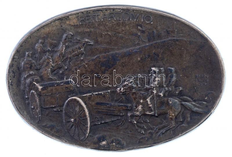 Austro-Hungarian Monarchy 1916. "REIT. ART. DIV. 10. (10th Cavalary Artillery Division)" hallmarked Ag cap badge. Sign.: Lajos Berán (8,08g/29x42mm) C:AU